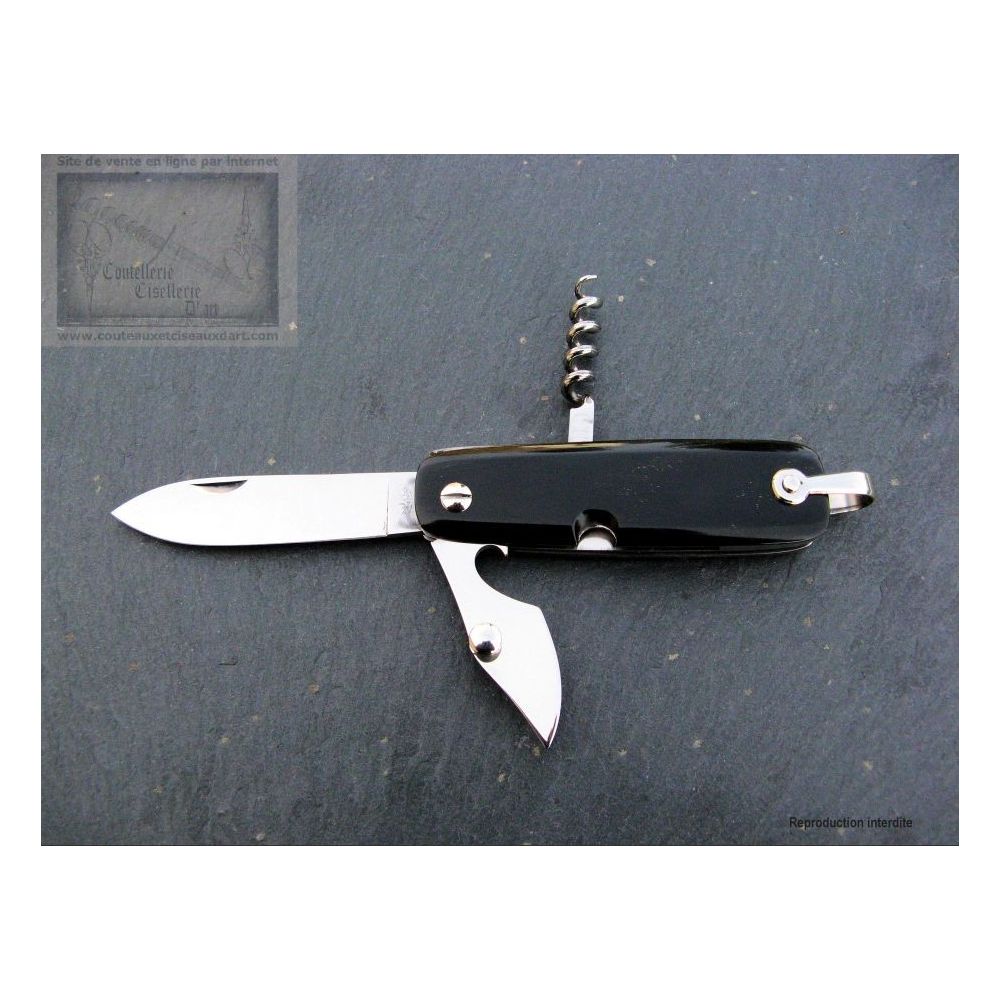 Canif comprenant. Lame avec tire-bouchon et décapsuleur.