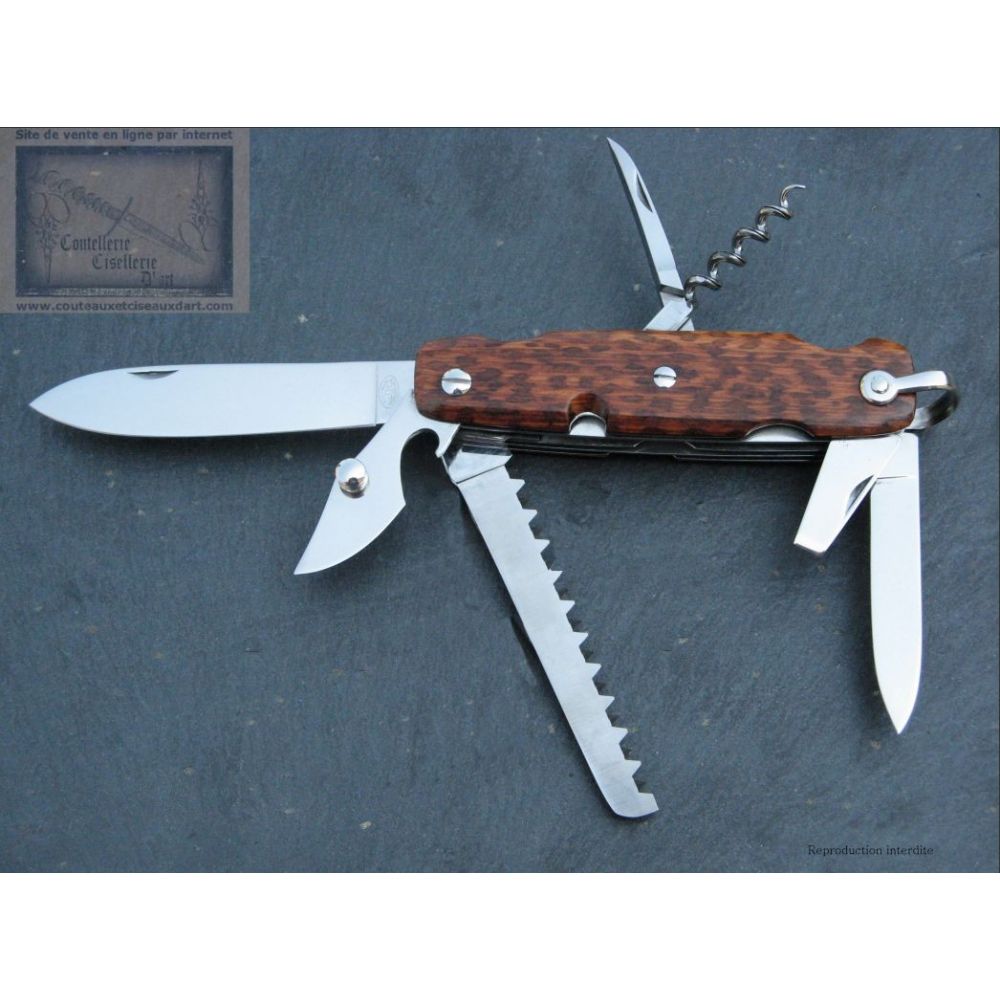 Canif comprenant. Lame,tire-bouchon,décapsuleur, tournevis, poinçon, petite lame et scie