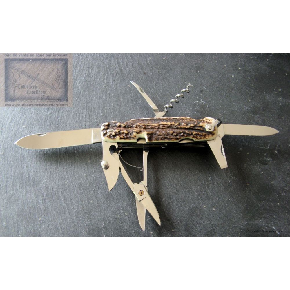 Canif comprenant. lame,tire-bouchon,décapsuleur, tournevis, poinçon, petite lame,ciseau