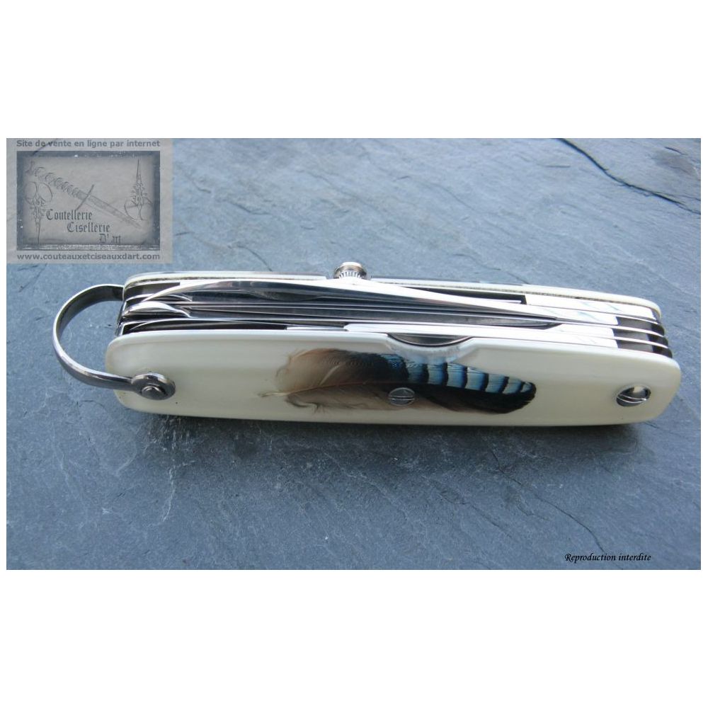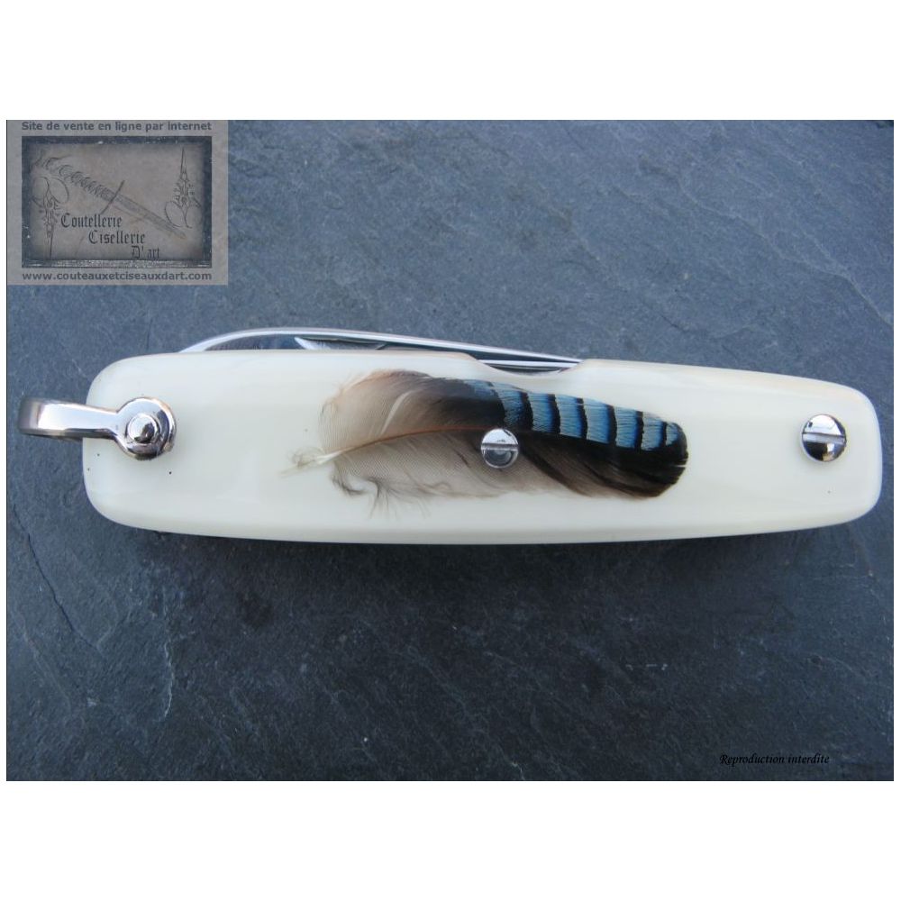 Manche de 10 cm avec incrustation PLUME DE GEAI