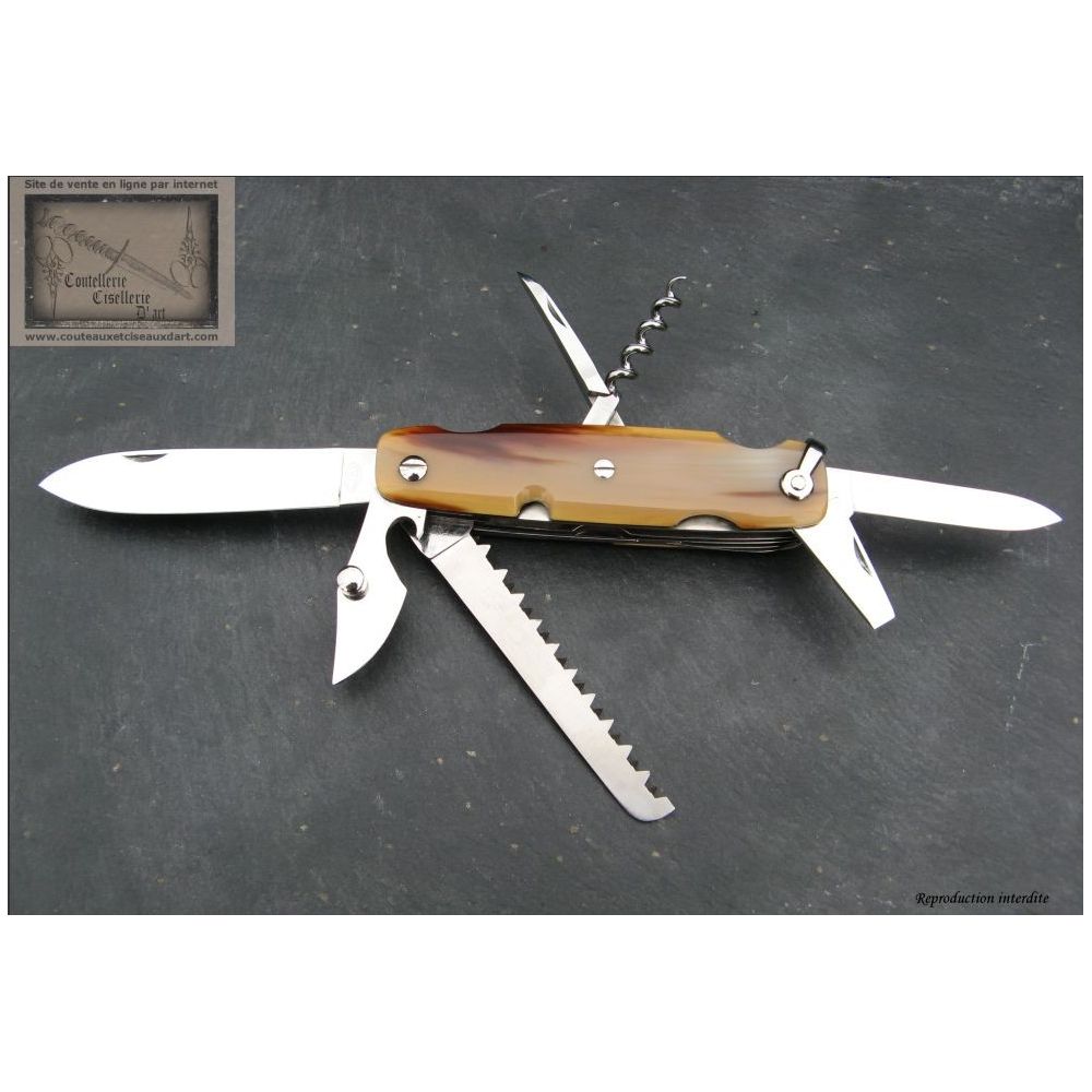 Canif comprenant. Lame,tire-bouchon,décapsuleur, tournevis, poinçon, petite lame et scie