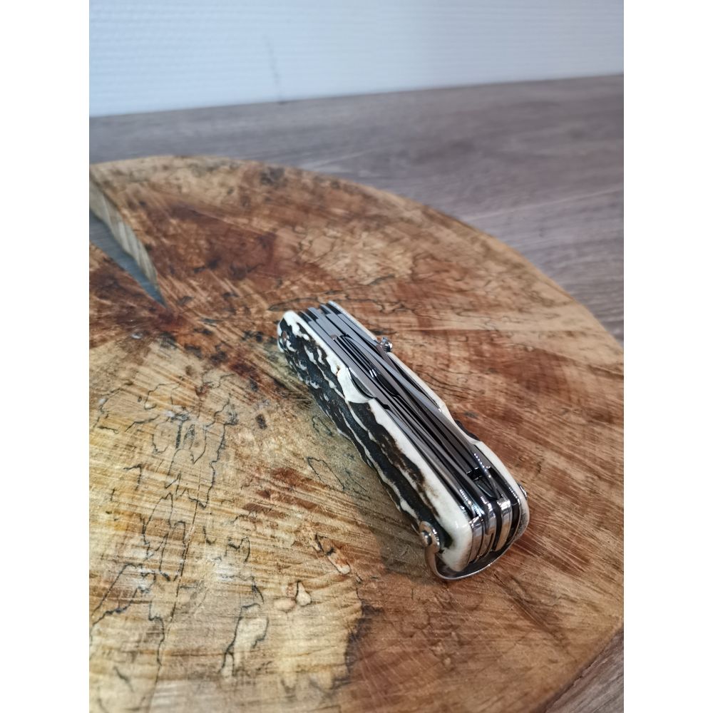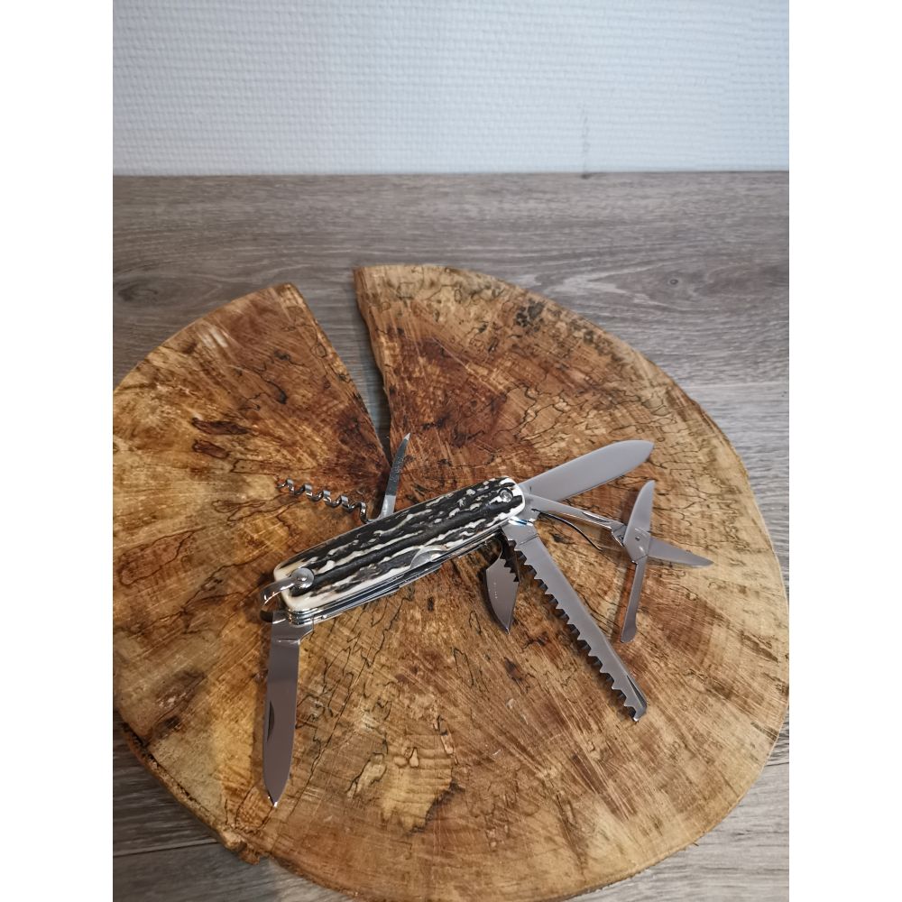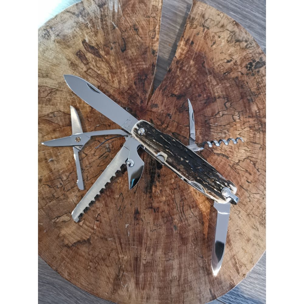 Canif comprenant. lame,tire-bouchon,décapsuleur, tournevis, poinçon, petite lame,ciseau et scie