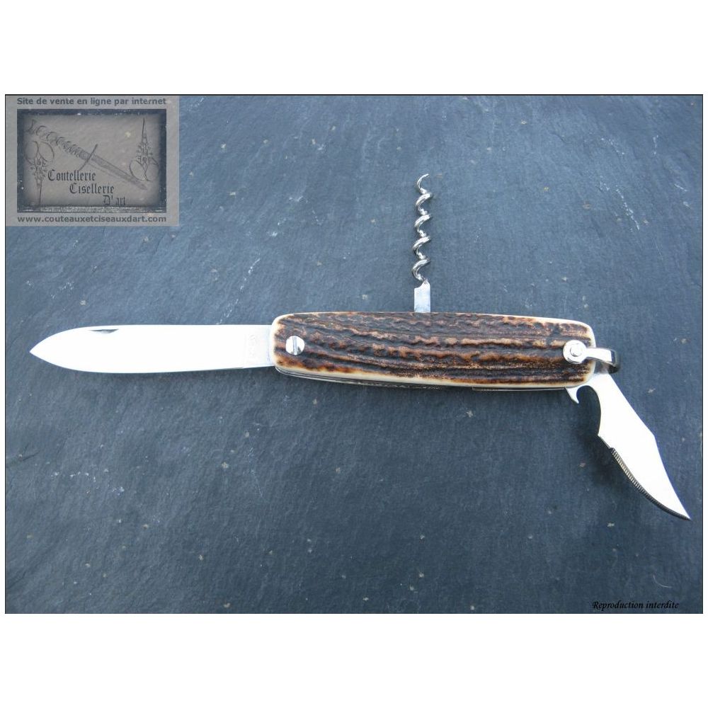 Canif comprenant. Lame avec tire-bouchon et décapsuleur.