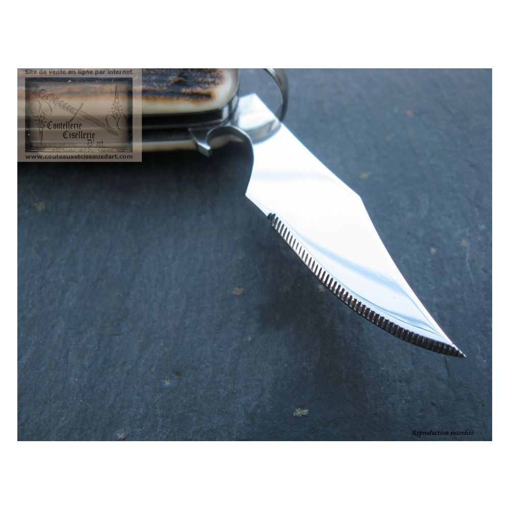Important : ces couteaux étant réalisé à l'unité, à la main, avec des matériaux naturels, le manche peut avoir un aspect légèrement différent d'une fabrication à l'autre sans que cela puisse constituer un défaut