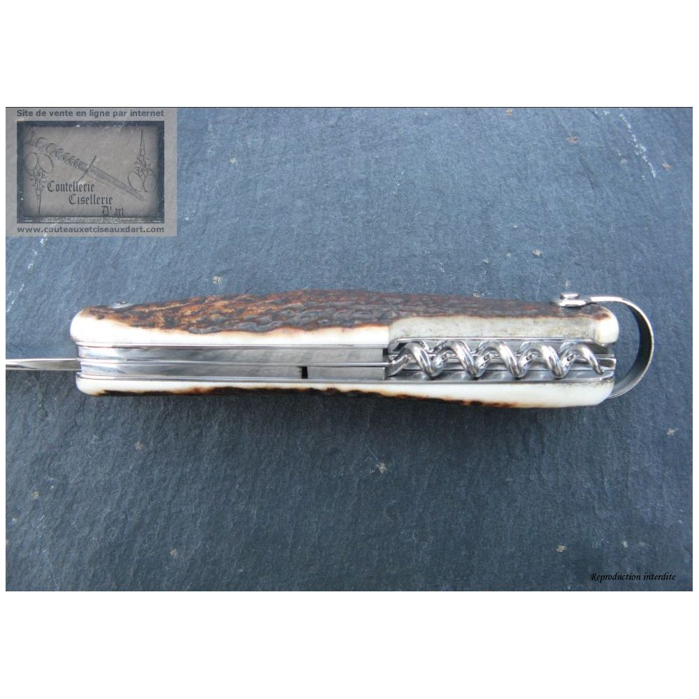 Canif comprenant, Lame avec tire-bouchon et décapsuleur.