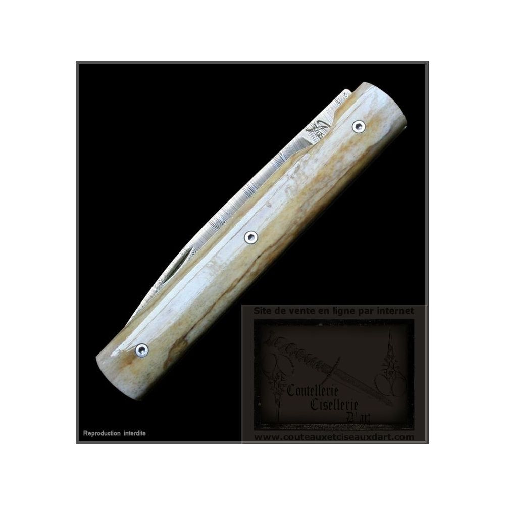 MANCHE : en os de girafle monté à vis six pans creux (acier inox)