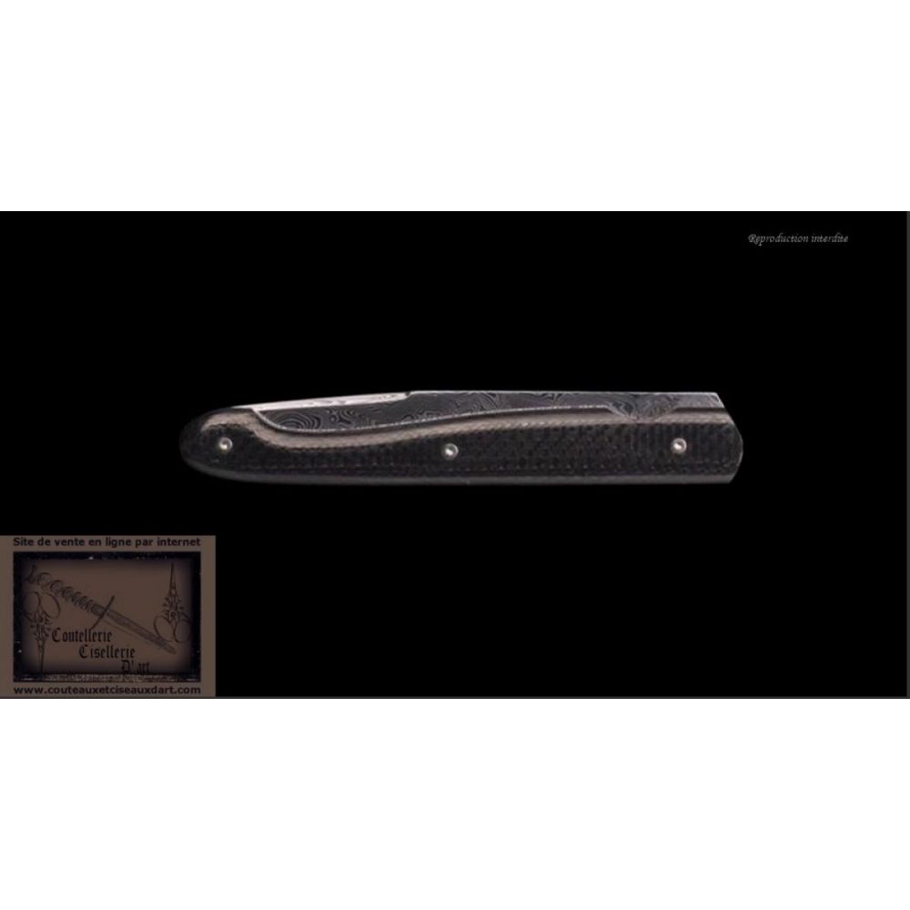 Couteau fermant type platine bloquante (linerlock), monté à vis.